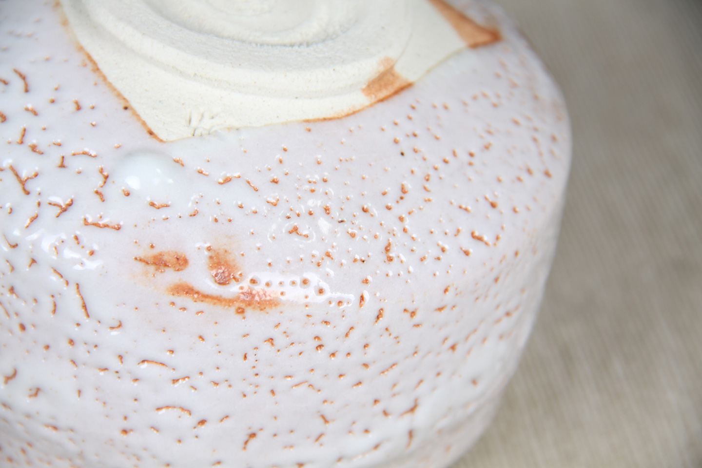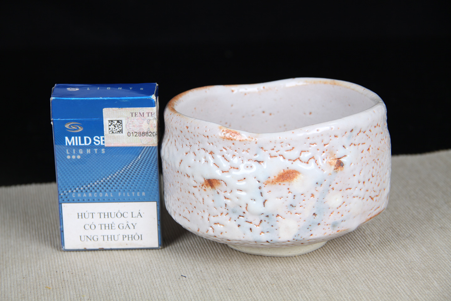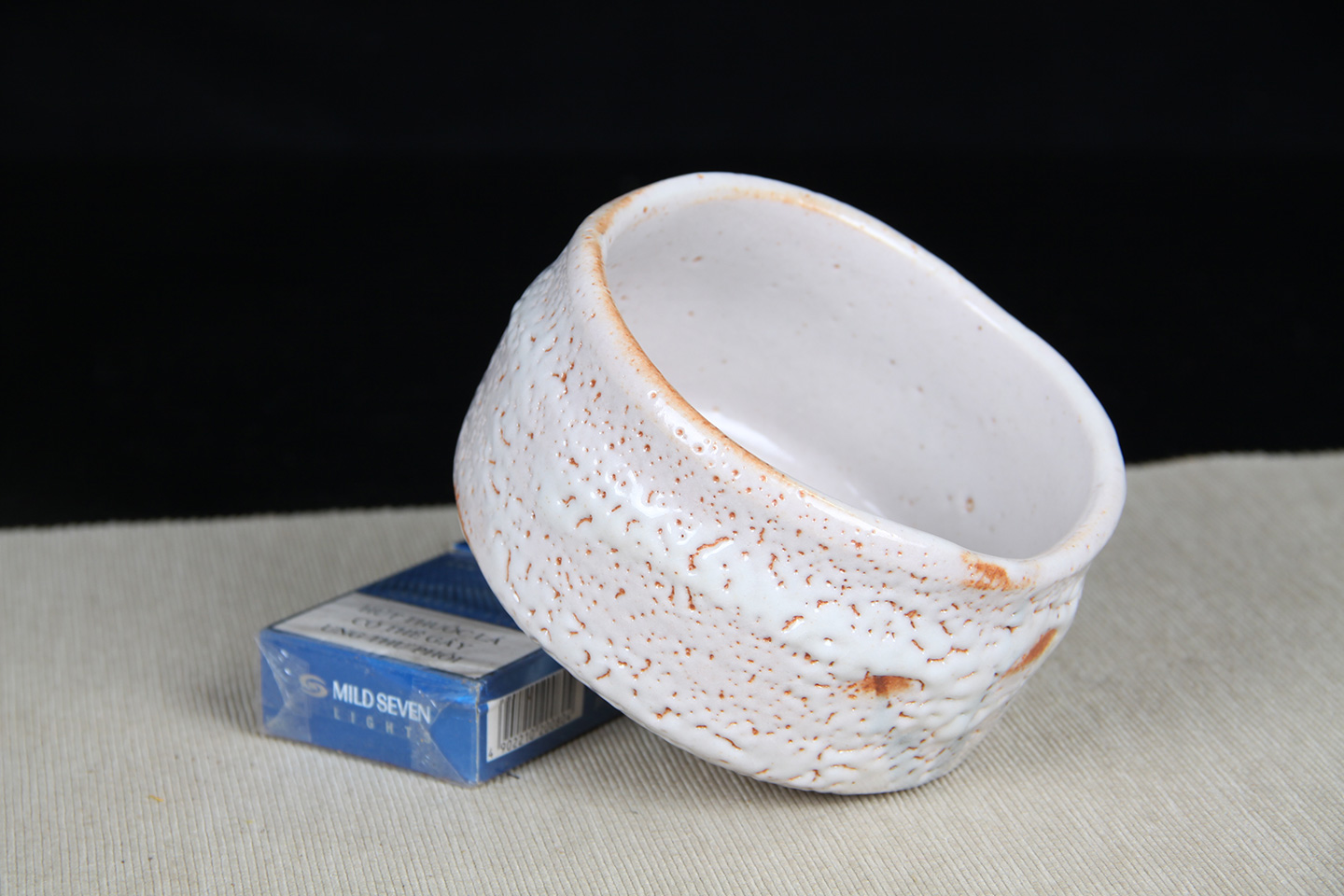 日本茶碗 秀山款 牛奶白色 志野烧 老茶碗 带原装桐木供箱