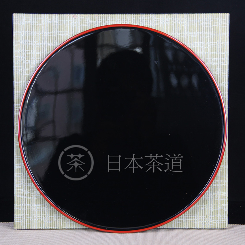 日本漆器 轮岛涂木胎漆器 黑漆大圆盘 内黑漆,底朱红大漆,尺寸较大,做奉茶盘极为合适