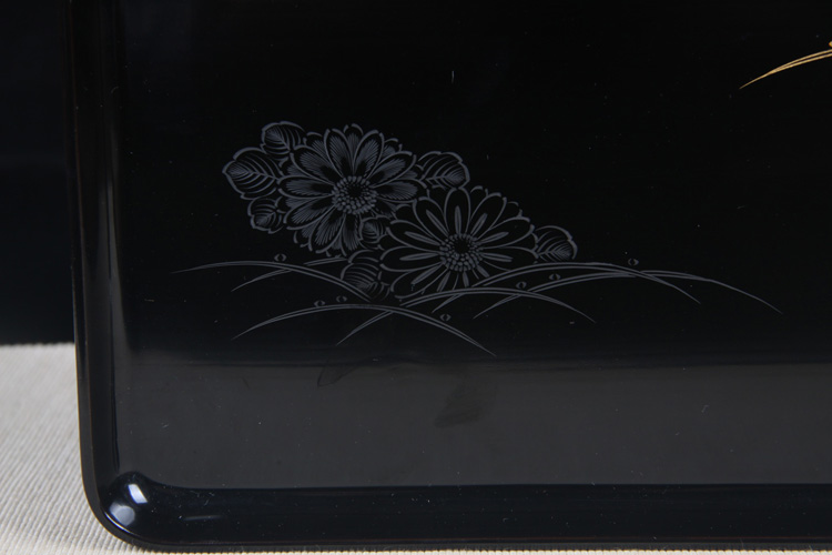 日本漆器 日本轮岛涂木胎漆器四方形漆器盘 日本轮岛涂漆器工艺,四方形,编制纹,工艺精细,带原装供箱