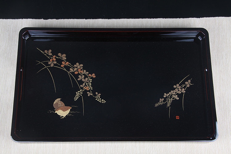 日本漆器 日本轮岛涂漆器竹排型长方盘 日本轮岛涂木胎漆器工艺,竹排型漆器盘
