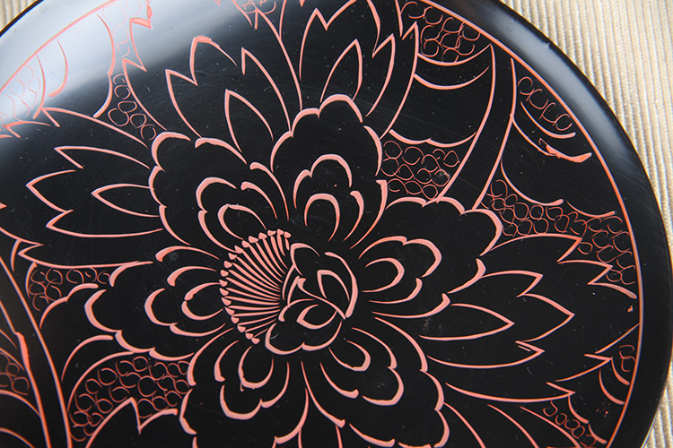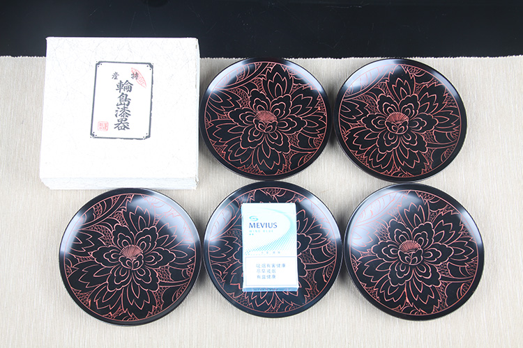 日本漆器 日本轮岛涂蔬果纹漆器盘