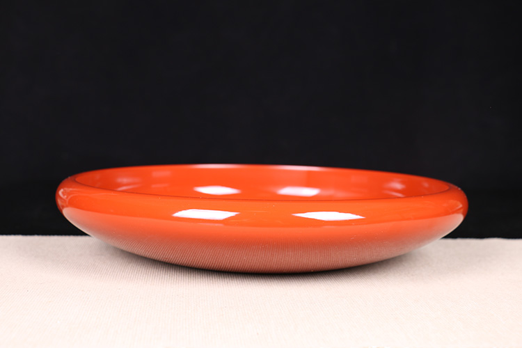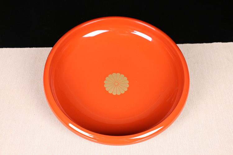 日本漆器 日本轮岛涂木胎漆器大果子盘 日本轮岛涂工艺,整体朱红大漆,内皇室菊花纹,整体较大,做干泡台十分合适