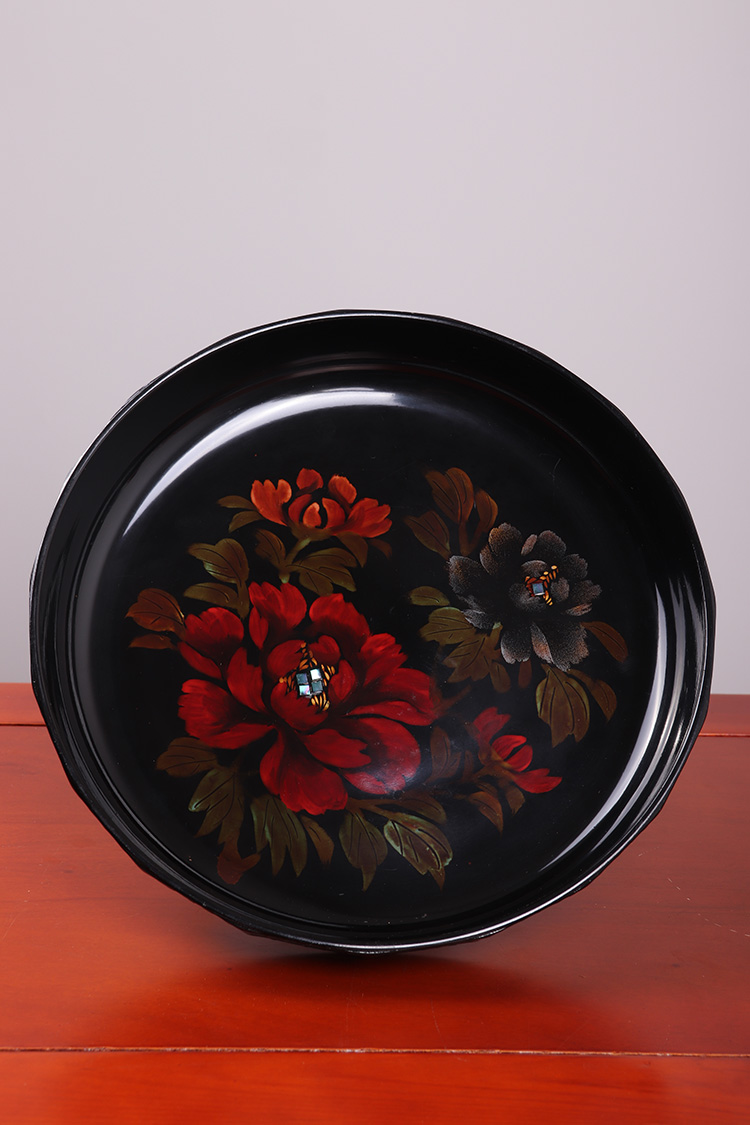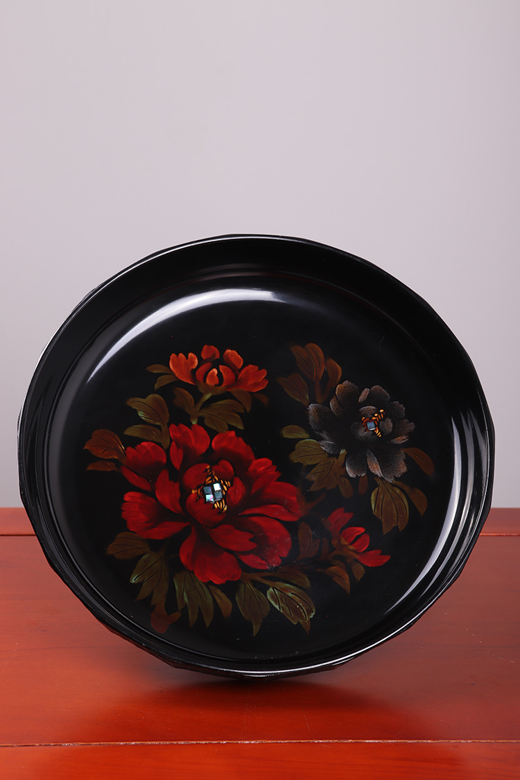 日本漆器 日本轮岛涂蔬果纹漆器盘