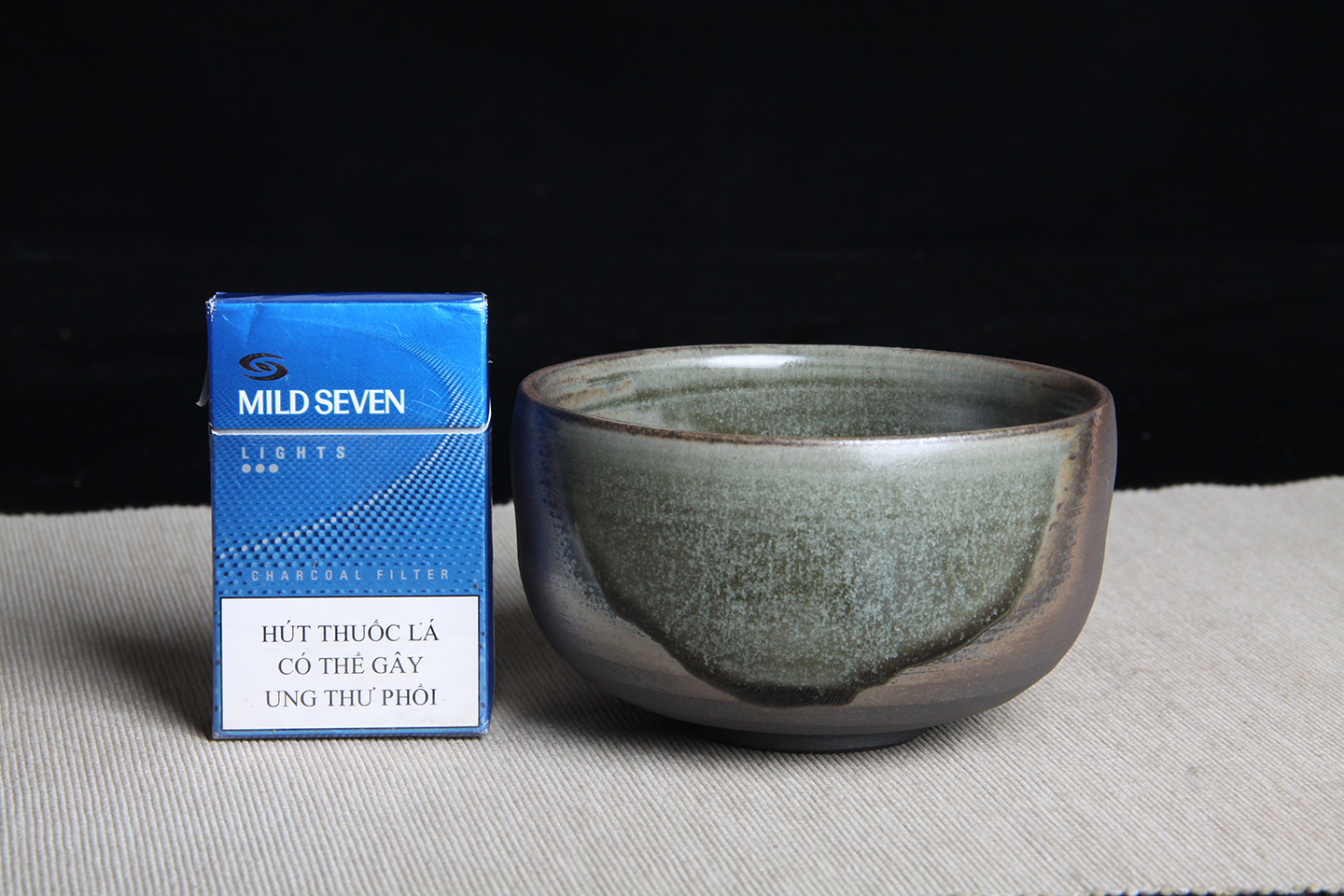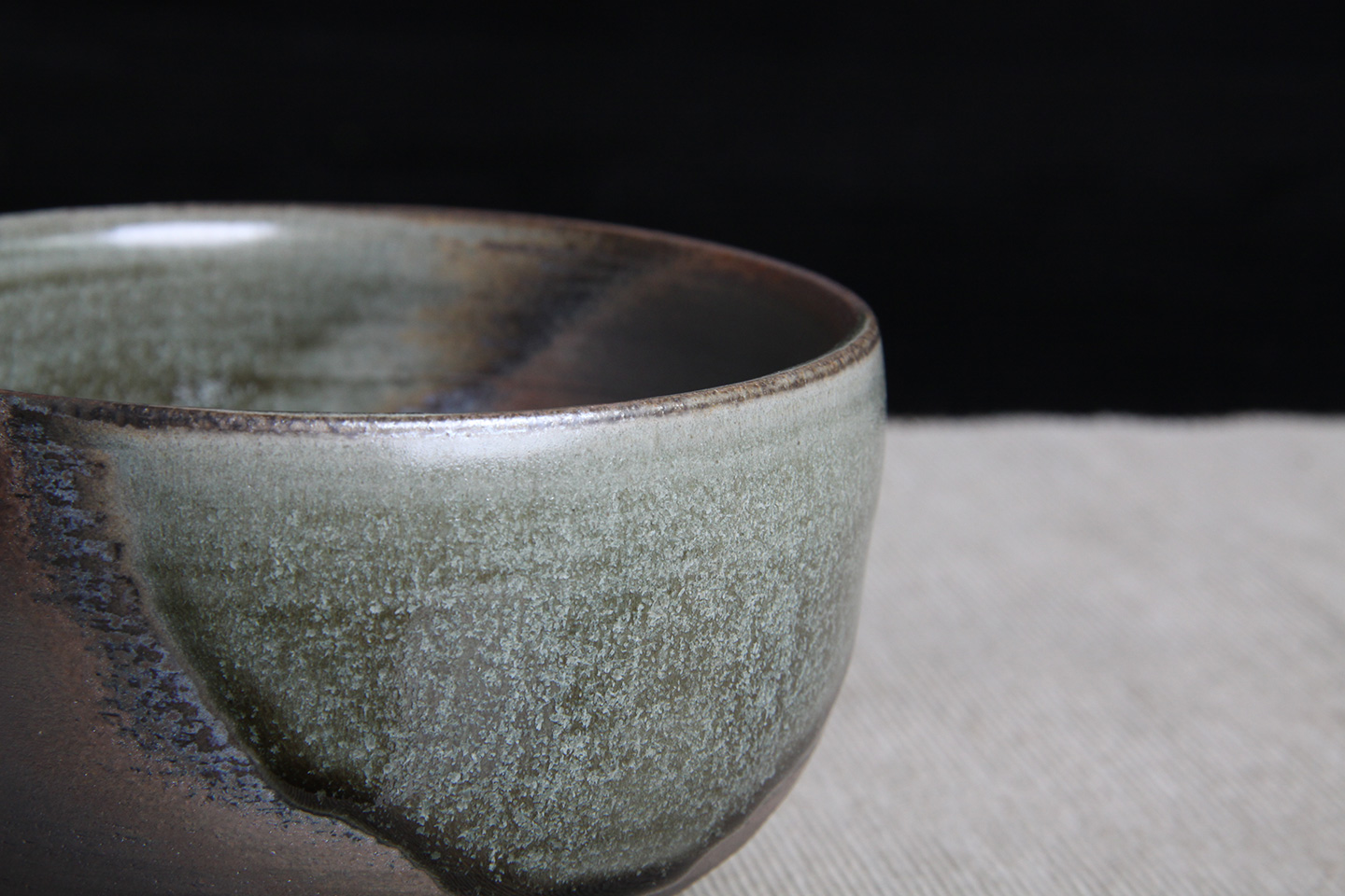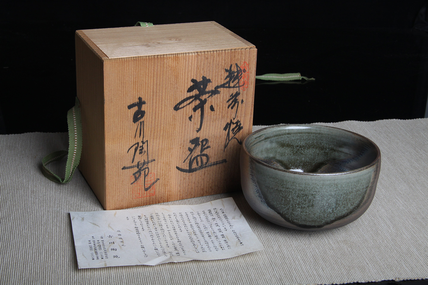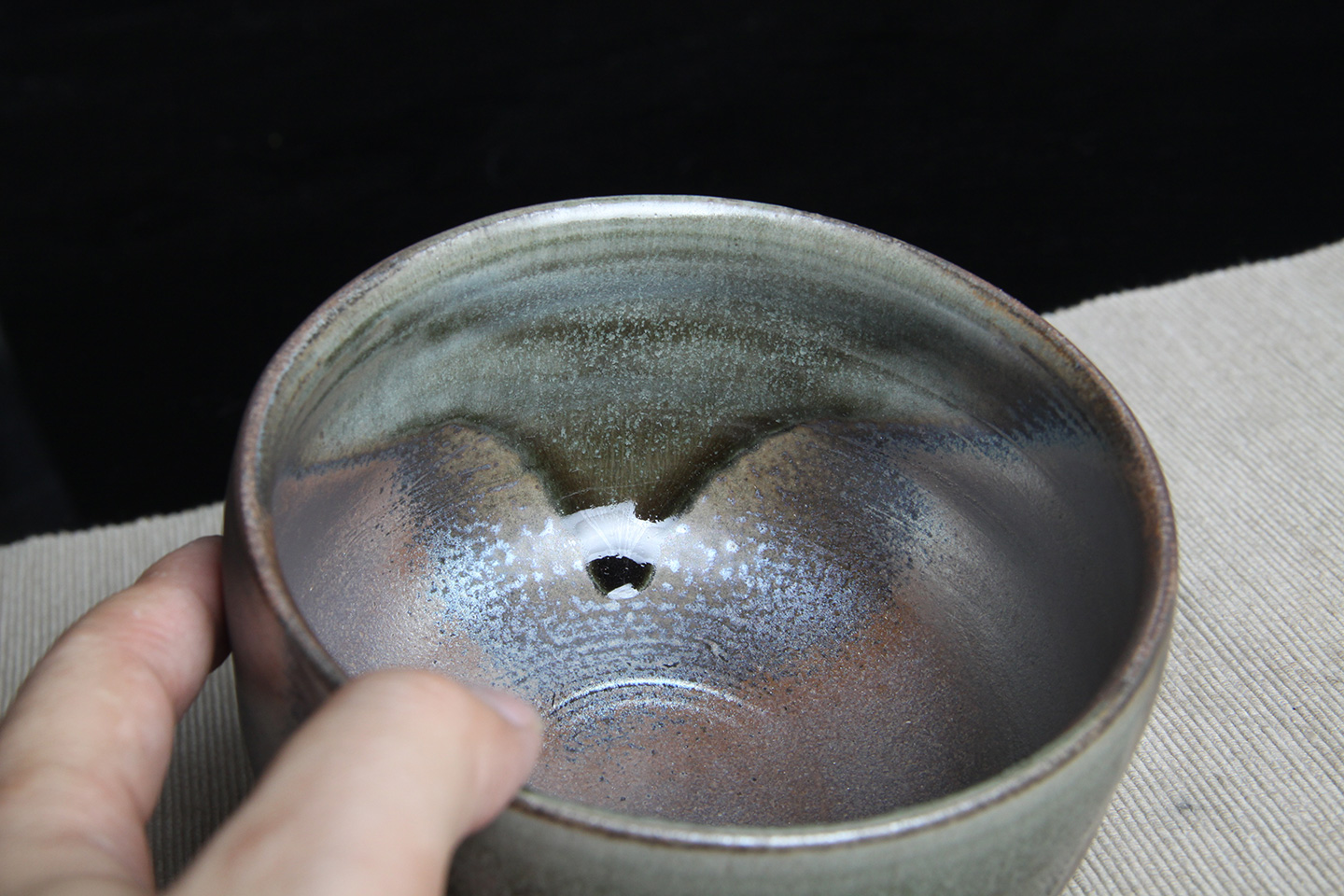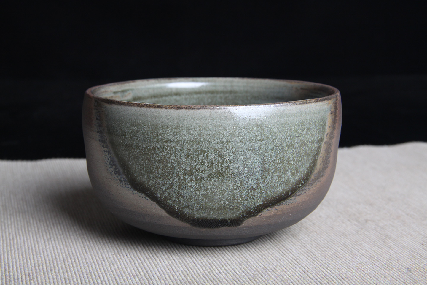 日本抹茶碗 日本灰釉斗笠型抹茶碗 日本抹茶碗,灰釉工艺,釉水肥润,细腻开片,烧制出铁斑,老味十足,带原装供箱