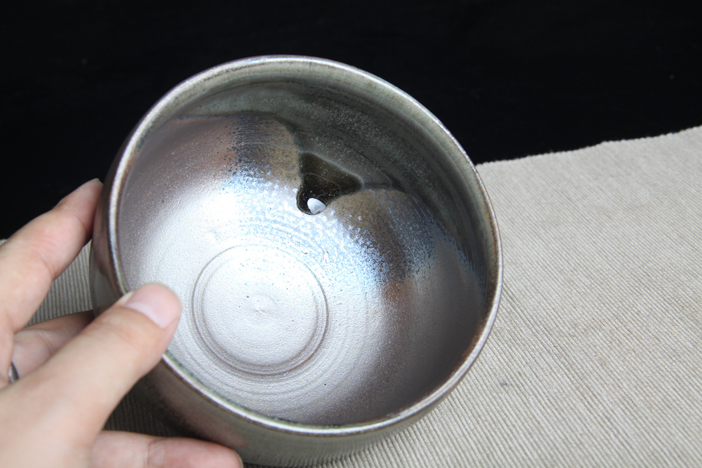 日本抹茶碗 日本黑釉斗笠型抹茶碗 日本黑釉工艺,烧制极为肥润,烧制温度高,出金属质感,斗笠器型,带作者款识,带原装供箱