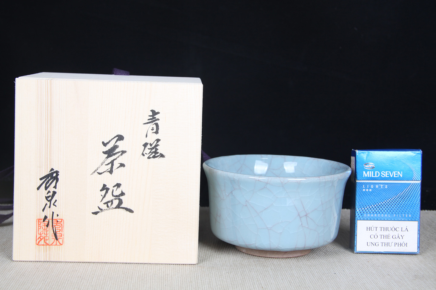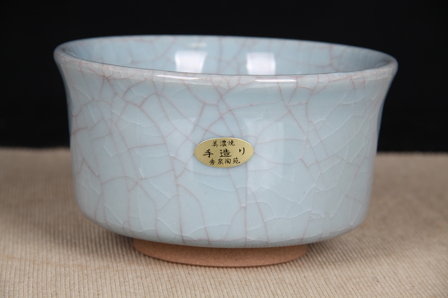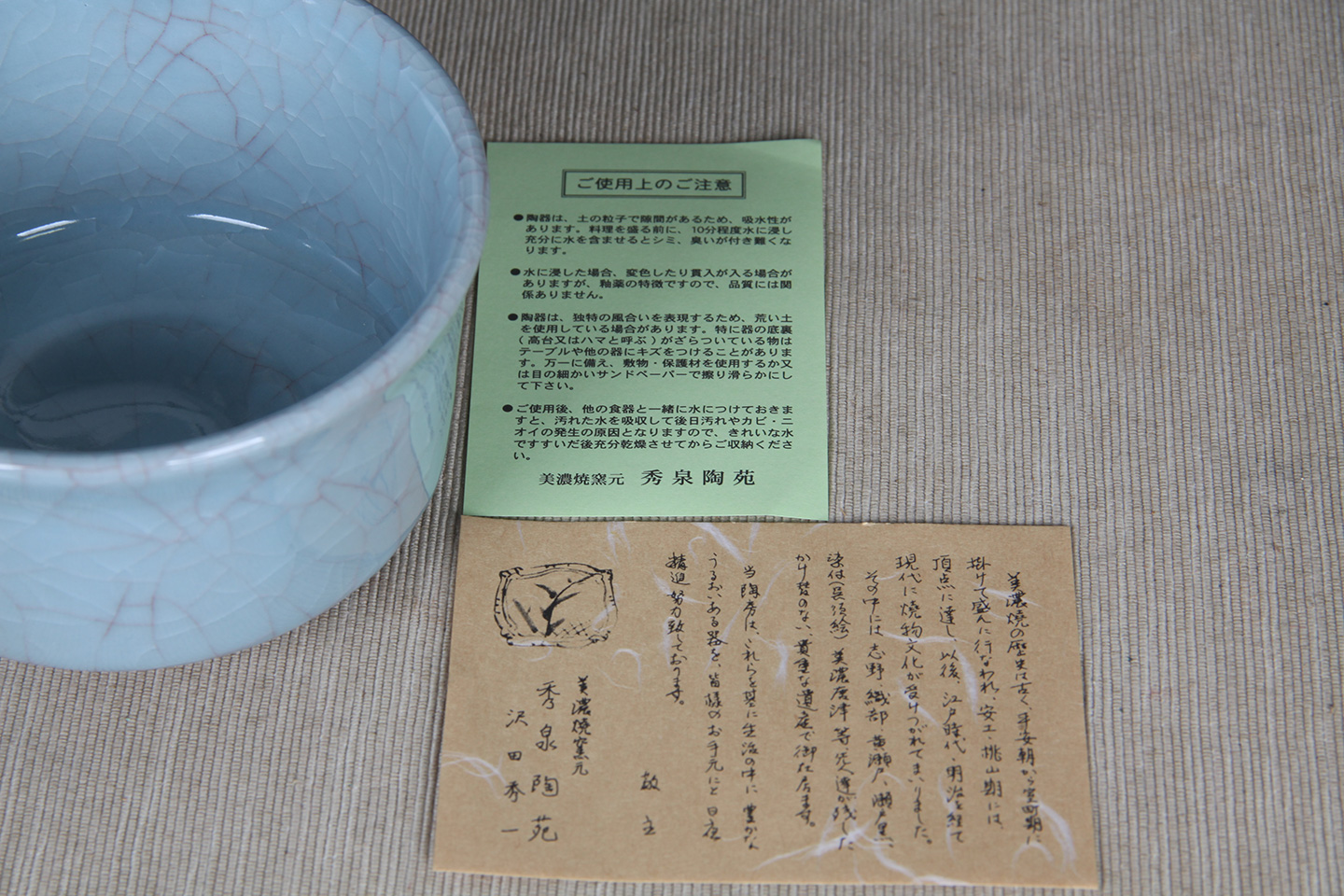 日本茶碗 秀泉陶苑 手工之美 青瓷 冰裂纹 釉水肥厚 老茶碗 带原装桐木供箱