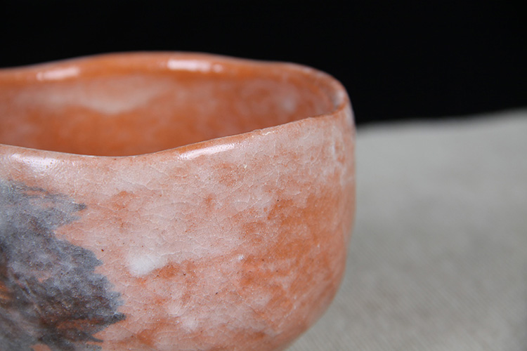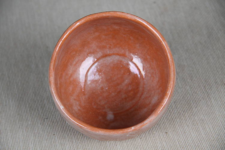 Z日本茶碗 赤乐烧 莹润饱满 老茶碗 涂上赤褐色釉药烧制成的乐烧茶碗