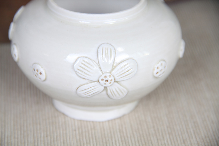 日本陶瓷 白釉小盖罐,荷叶型盖子