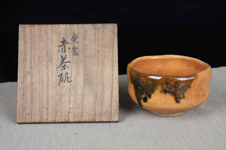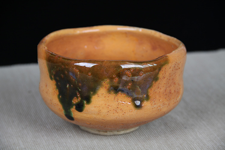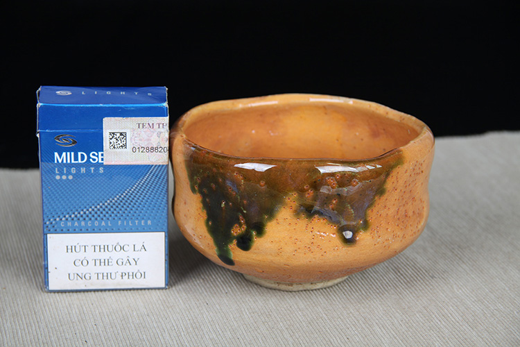 日本抹茶碗 日本赤乐烧斗笠型抹茶碗 日本乐烧工艺,釉水肥润,细腻开片,可惜碗底釉面有磨损,带作者款识