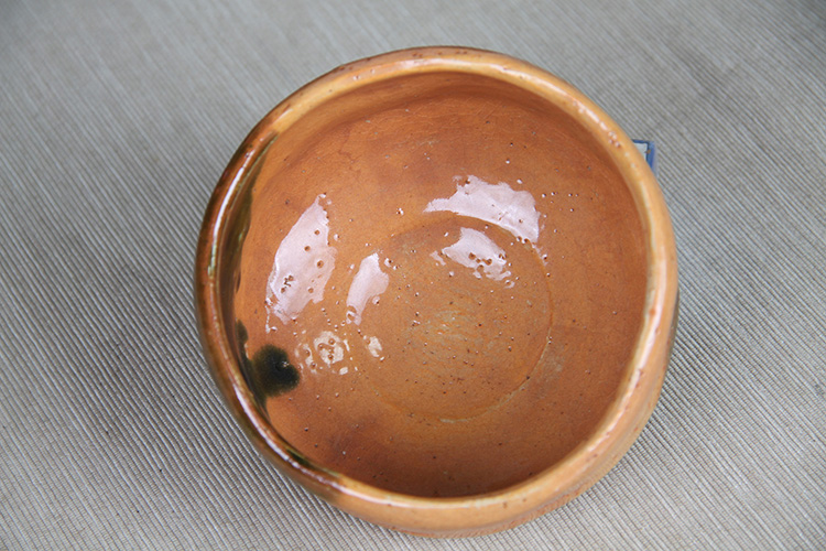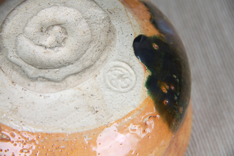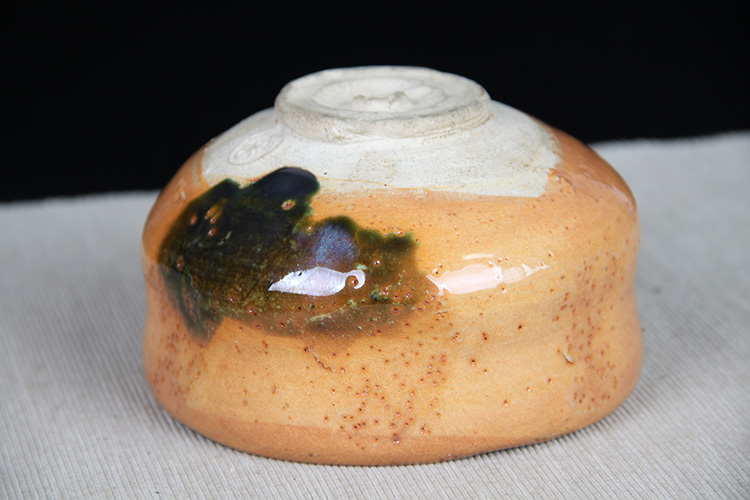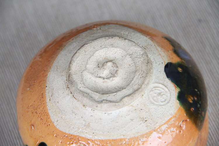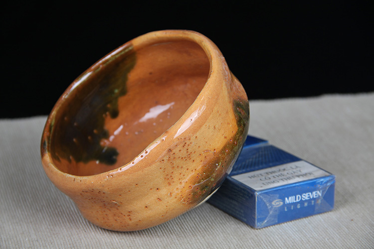 日本抹茶碗 日本黄釉窑变斗笠型抹茶碗 日本黄釉工艺,窑变烧制线条修饰,釉水肥润,斗笠器形,带作者款识