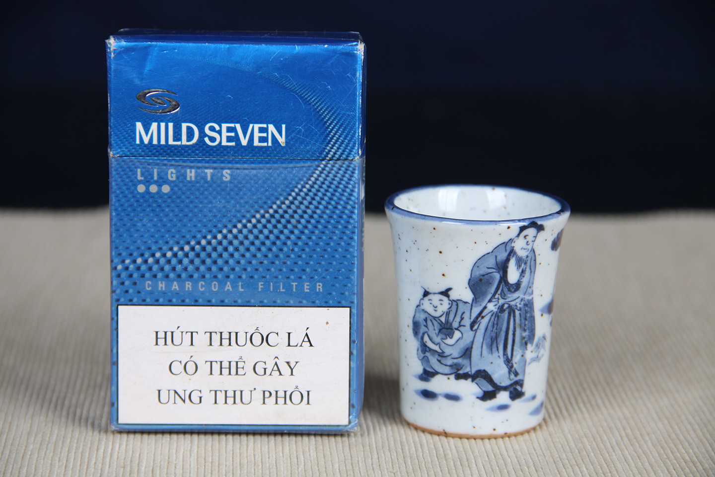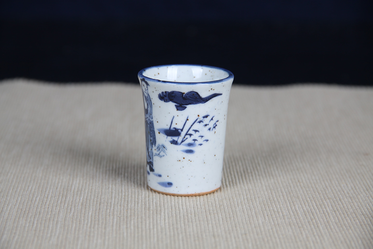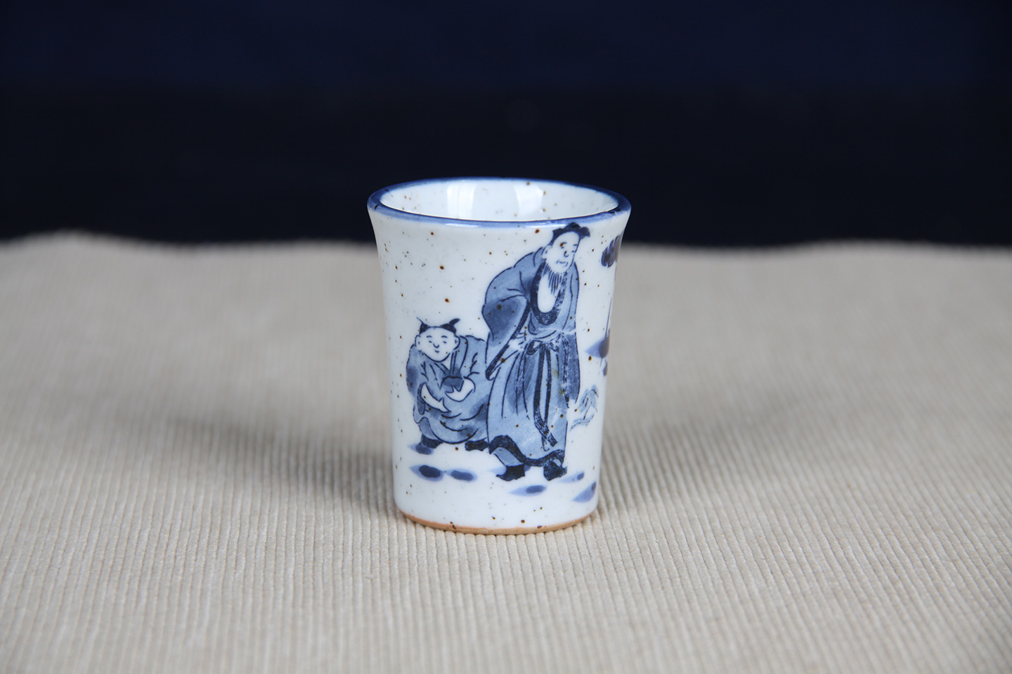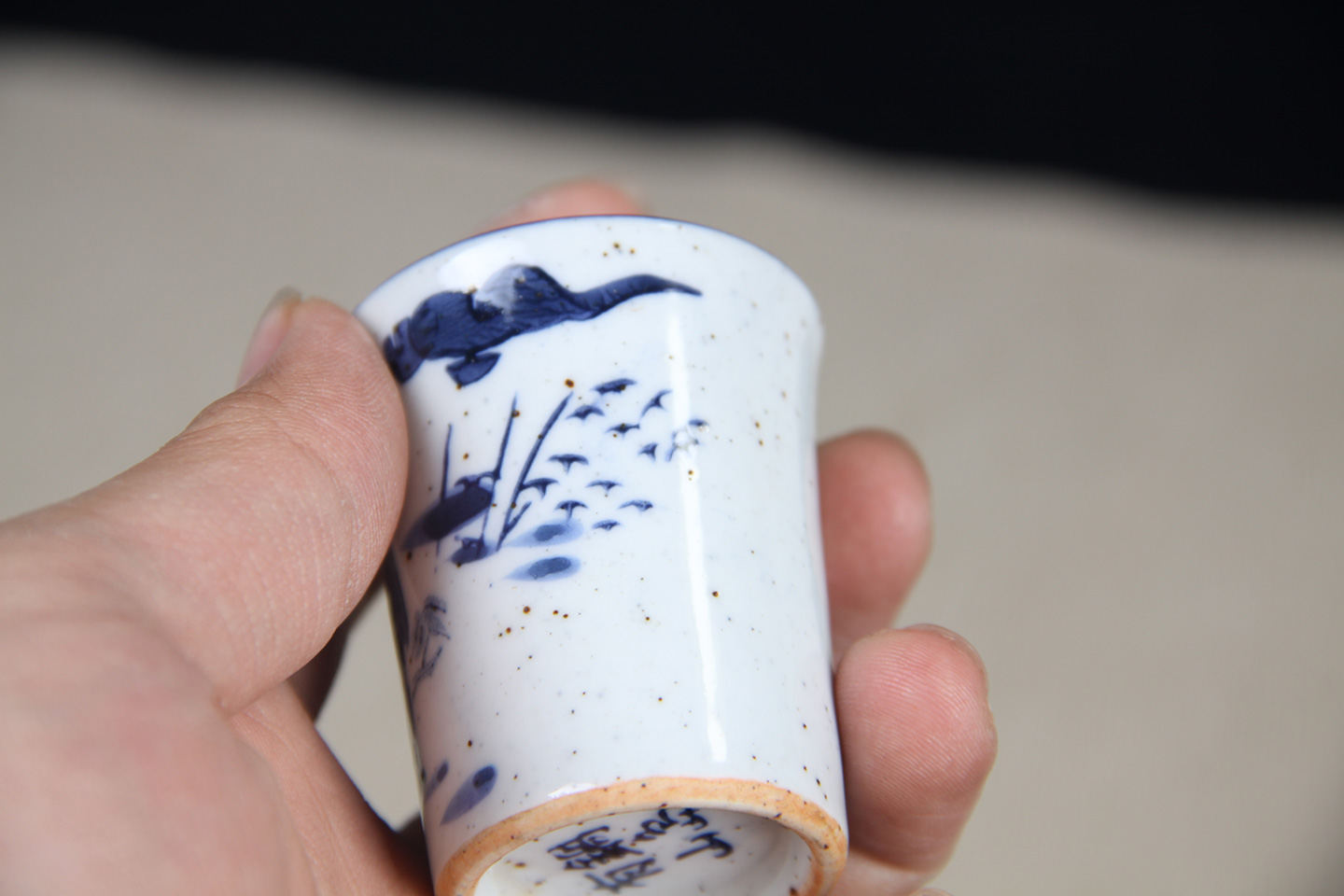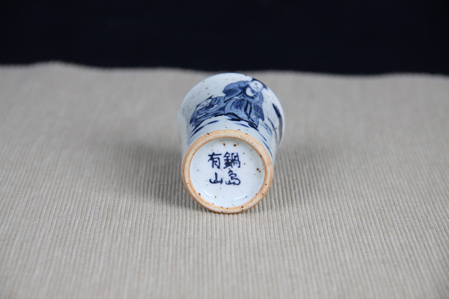 日本陶瓷 锅岛有山底款人物闻香杯 釉水含铁,表面铁点析出,有年份的杯子,做一只闻香杯味道十足
