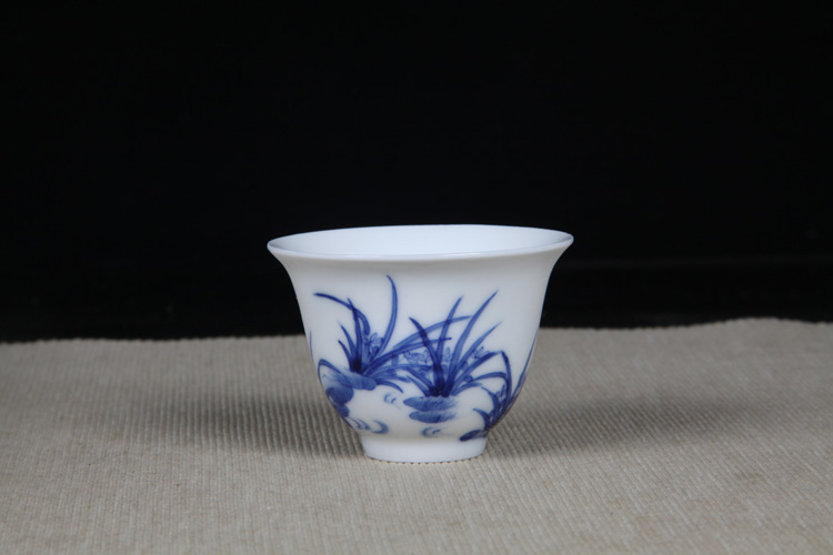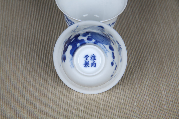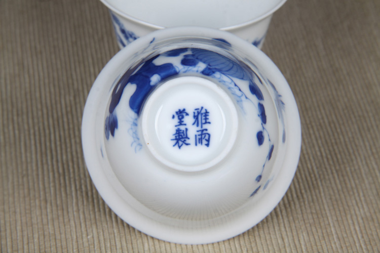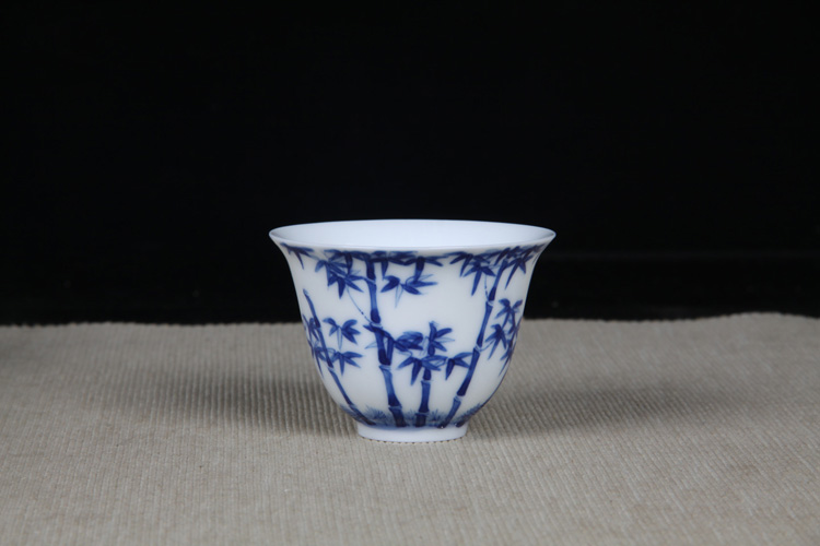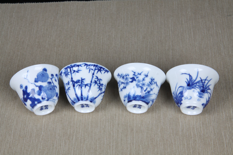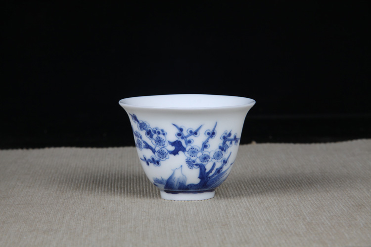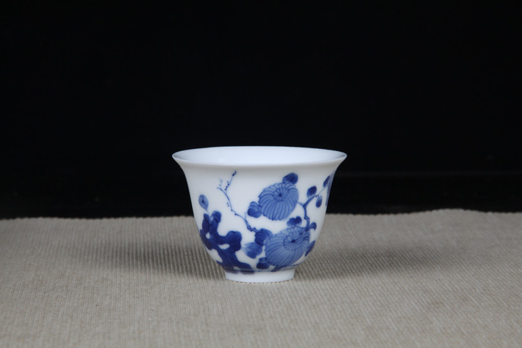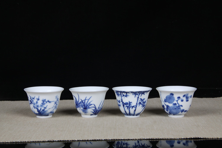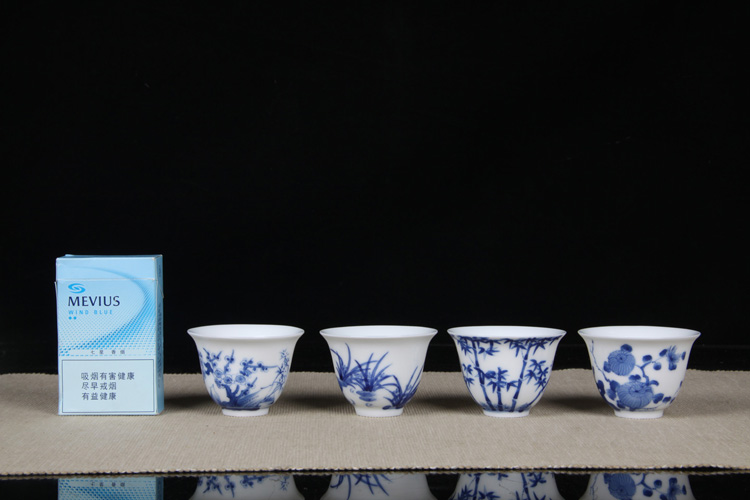 Z日本陶瓷 青花梅兰竹菊四君子月光杯,胎质细腻,质坚胎薄,青花发色靓丽,绘画功力十足,画工精细有味道,雅雨堂制,回流老杯,值得收藏