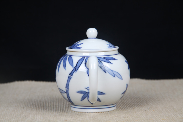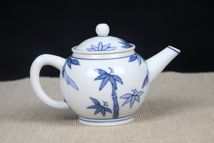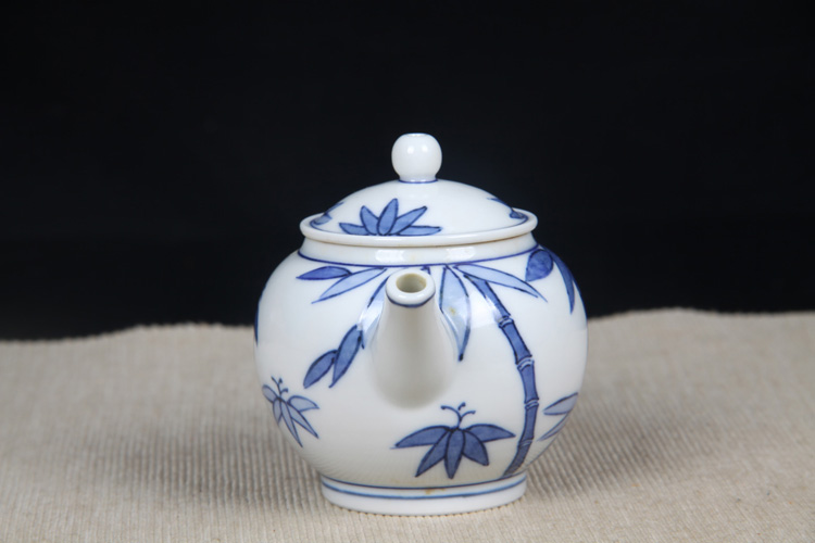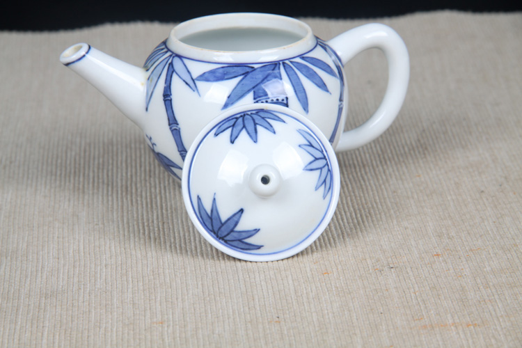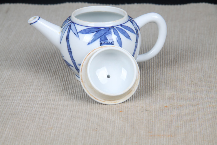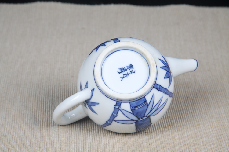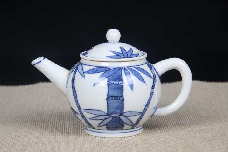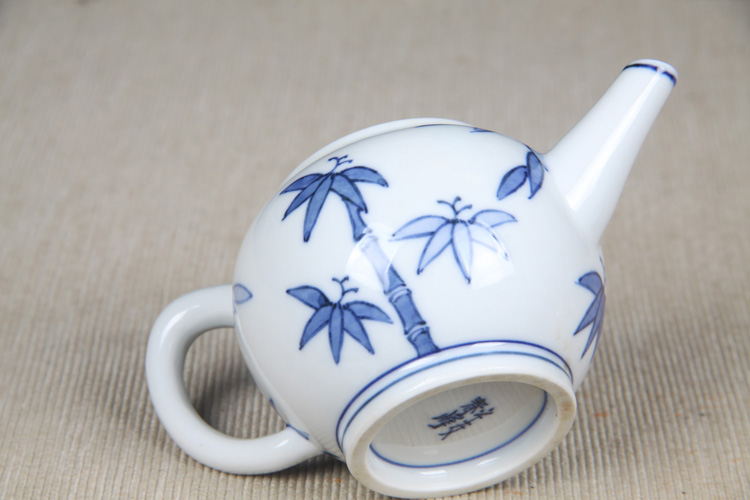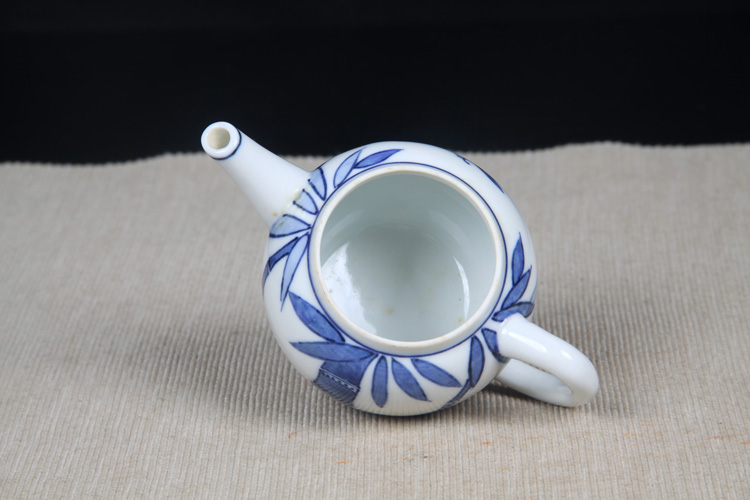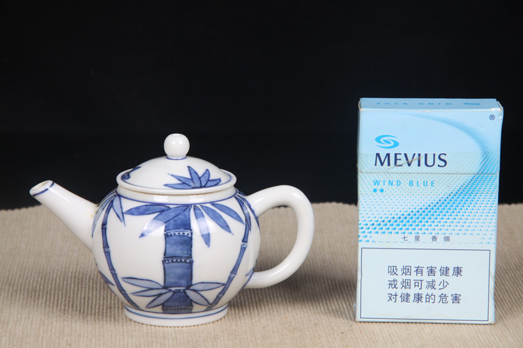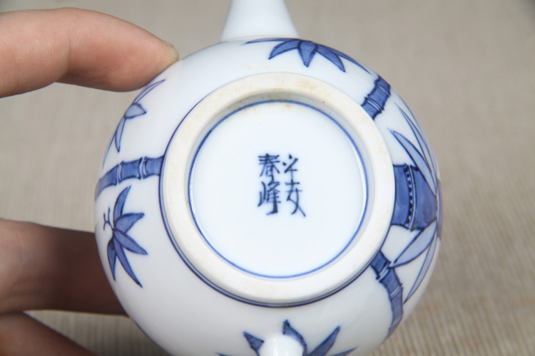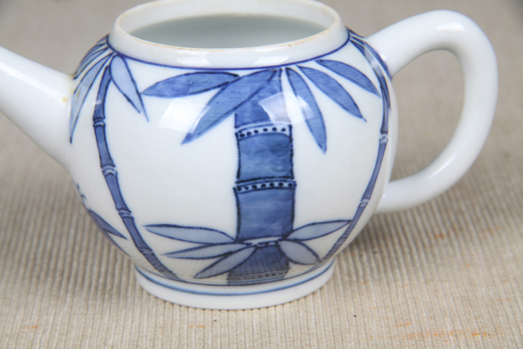 日本陶瓷急须 日本青花开窗山水纹图案纹炮口急须 日本青花工艺,绘制开窗山水纹,釉水肥润
