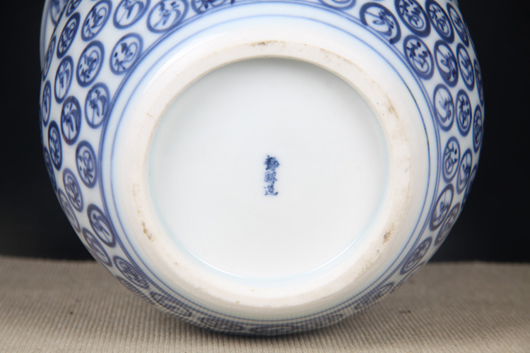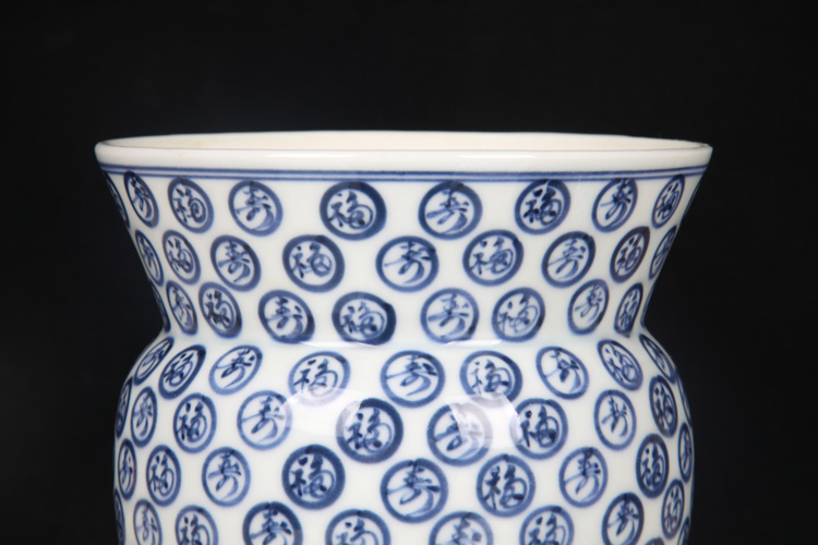 日本陶瓷 日本青花福寿字图案水指 日本青花工艺,手写福寿字,每一只字体有不同,釉水极为肥润