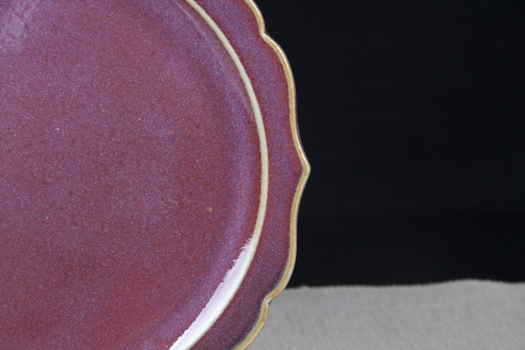 日本陶瓷 日本紫钧釉花口盘 钧瓷烧制工艺,紫钧发色,颜色艳丽沉稳,器型好,口沿漂亮,做干泡台或者赏盘都非常合适,孝字底款