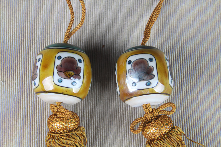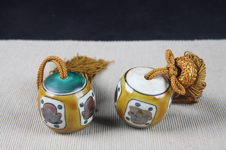 【名称】日本茶器 日本九谷烧花卉纹风镇一对。