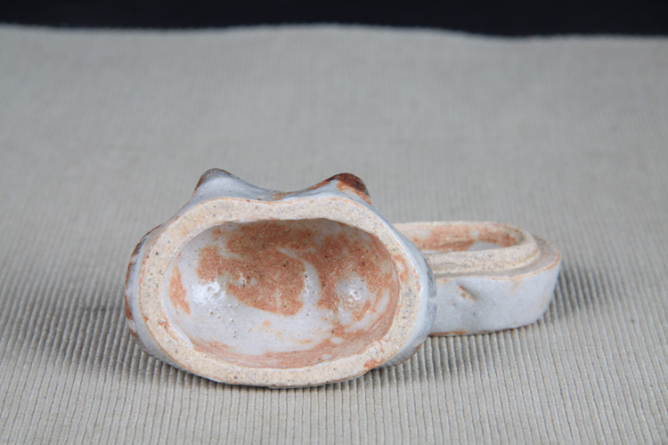 【名称】日本茶器 日本志野烧角型香盒 日本志野烧工艺,羊角型,桃山窑,带原装供箱证书。