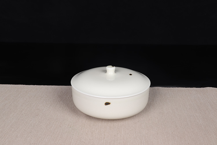 【名称】日本陶瓷 日本鹿背山烧无想窑大前芳春造果子盘 日本仿官釉,米黄色,釉水极为肥润,难得烧制窑变褐斑,有盖果子盘,放水果点心茶叶都十分合适,带原装供箱。
