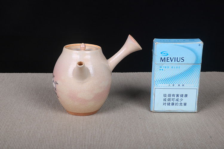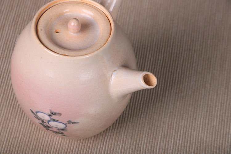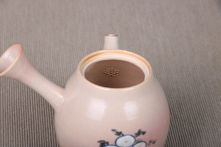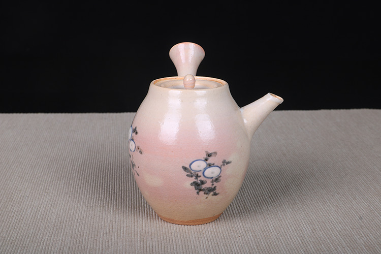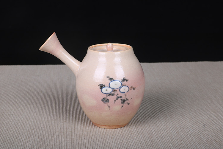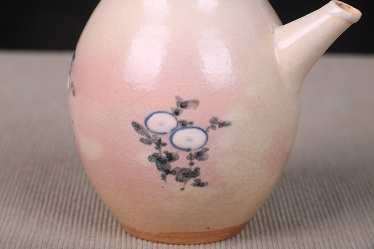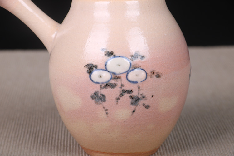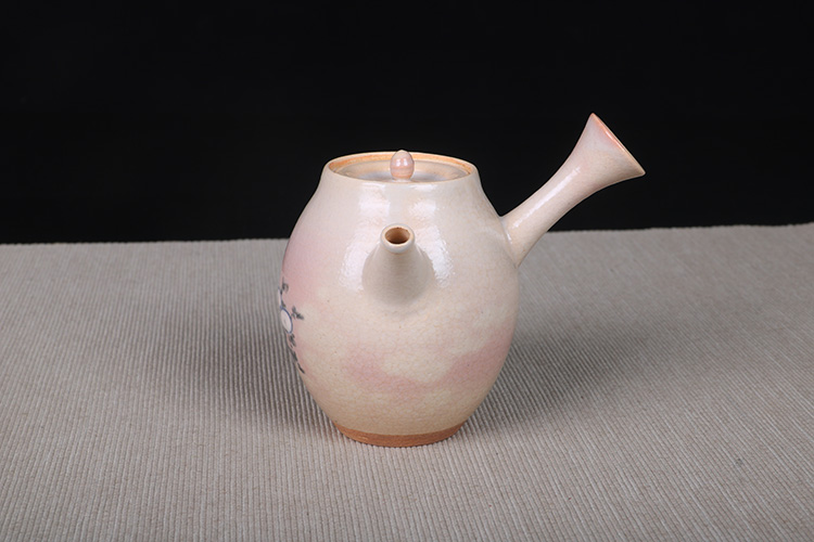 日本陶瓷急须 日本萩烧花卉纹侧把急须 日本陶瓷侧把壶,萩烧工艺,釉水肥润,烧制花卉纹,壶身一处开片过度,性价比高