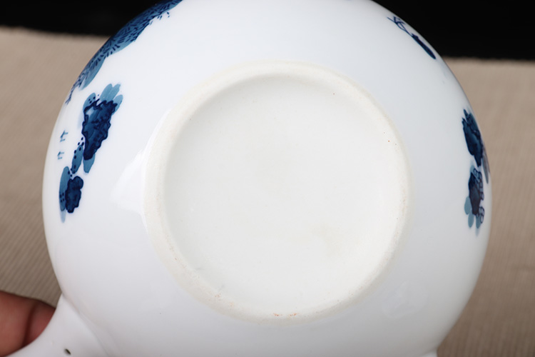 日本陶瓷急须 日本青花缠枝莲纹大瓷壶 日本青花工艺,苏麻离青,发色湛蓝,画工精细,釉水肥润,平安春峰款。