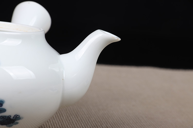 日本陶瓷急须 日本青花开窗山水纹图案纹炮口急须 日本青花工艺,绘制开窗山水纹,釉水肥润