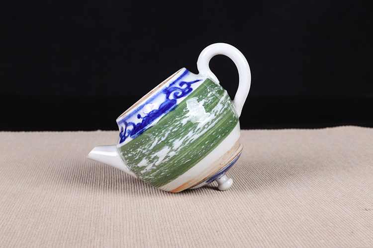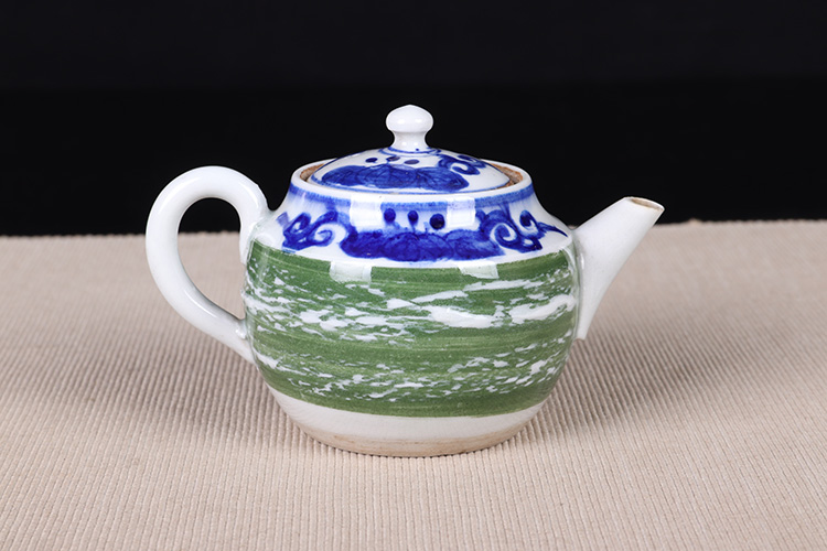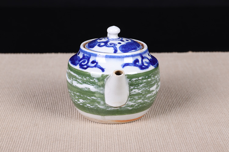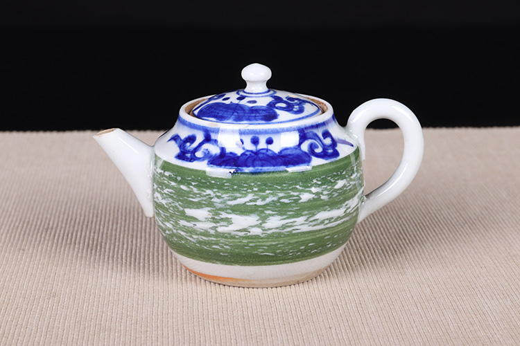 日本陶瓷急须 日本青花绿釉陶瓷急须茶壶