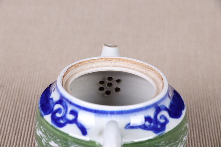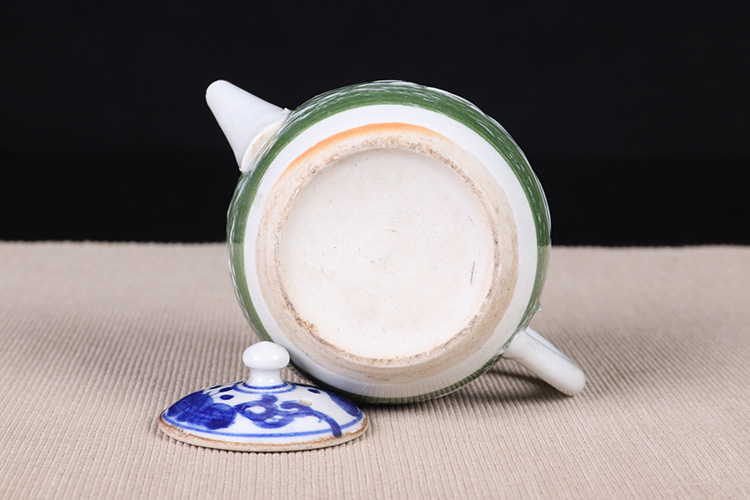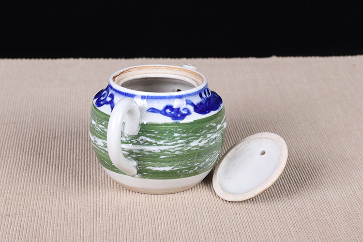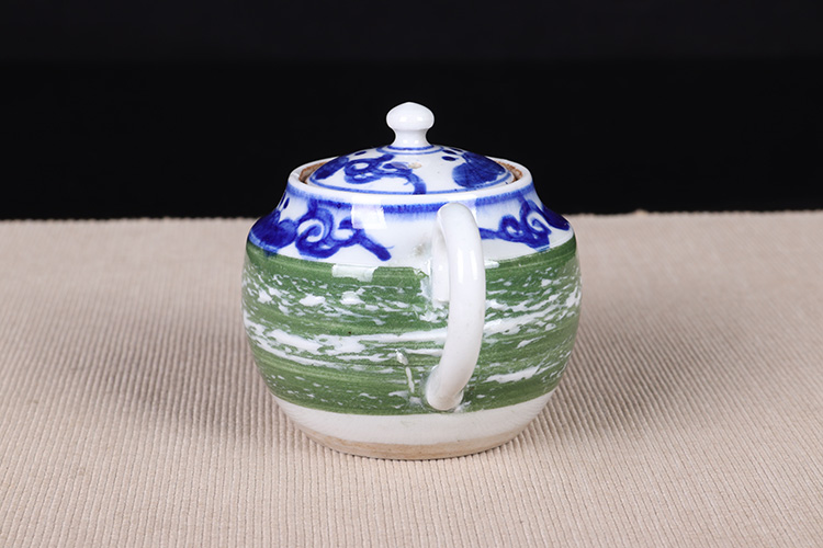 【名称】日本陶瓷急须 日本青花绿釉陶瓷急须茶壶。
