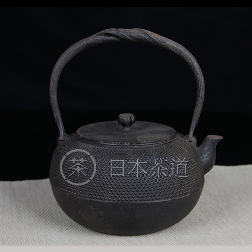 日本早期 霰纹里面的最经典的针霰纹 全部由手工一个一个点上去 铜盖 宝珠型 老铁壶 容量适中