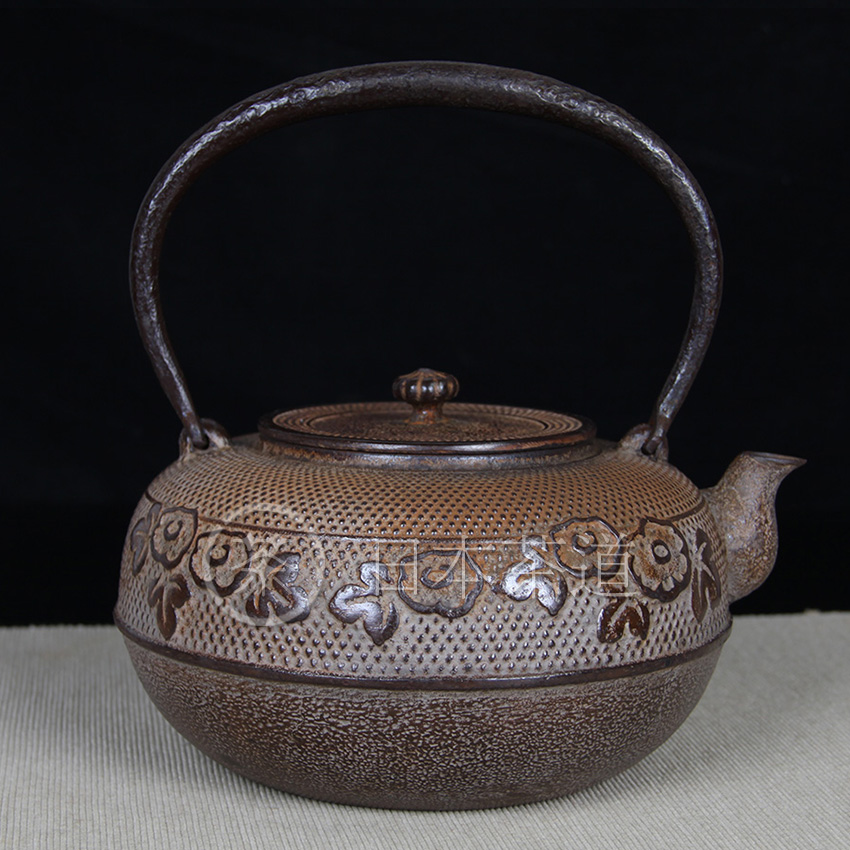 日本铁壶 日本南部老铁壶人间国宝高桥敬典正寿堂花卉纹老铁壶