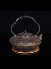富士山型鼓摘铜钱纹铁壶,带款不清k