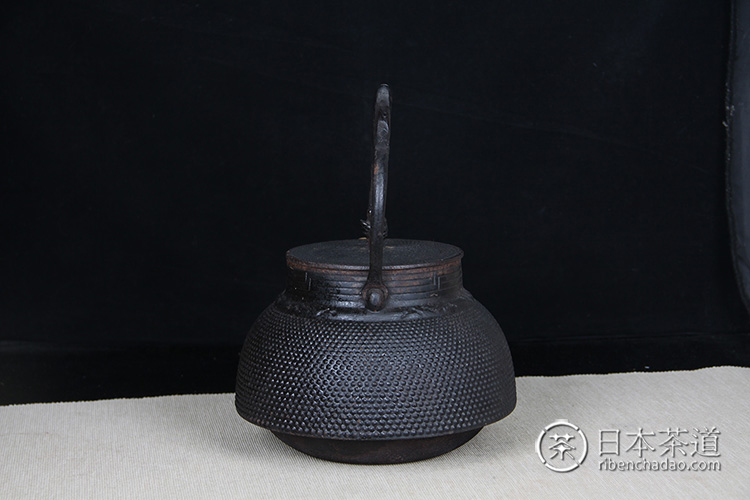 日本铁壶 日本大霰纹银摘丸型老铁壶 日本京都系釜师款老铁壶铁瓶,大霰纹,壶型漂亮,流口线条优美