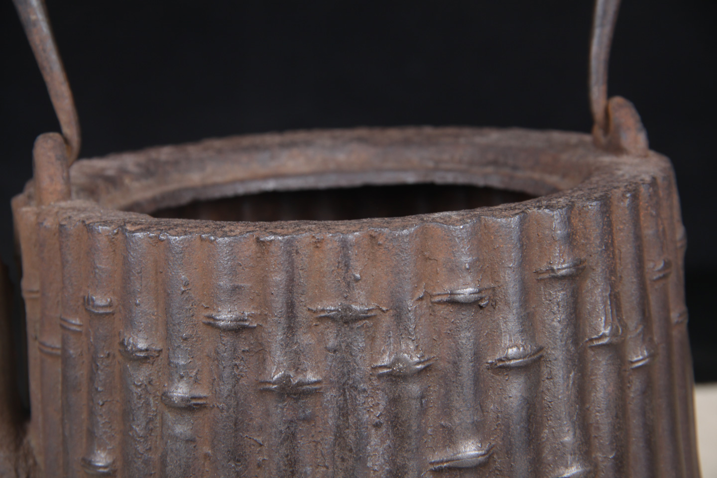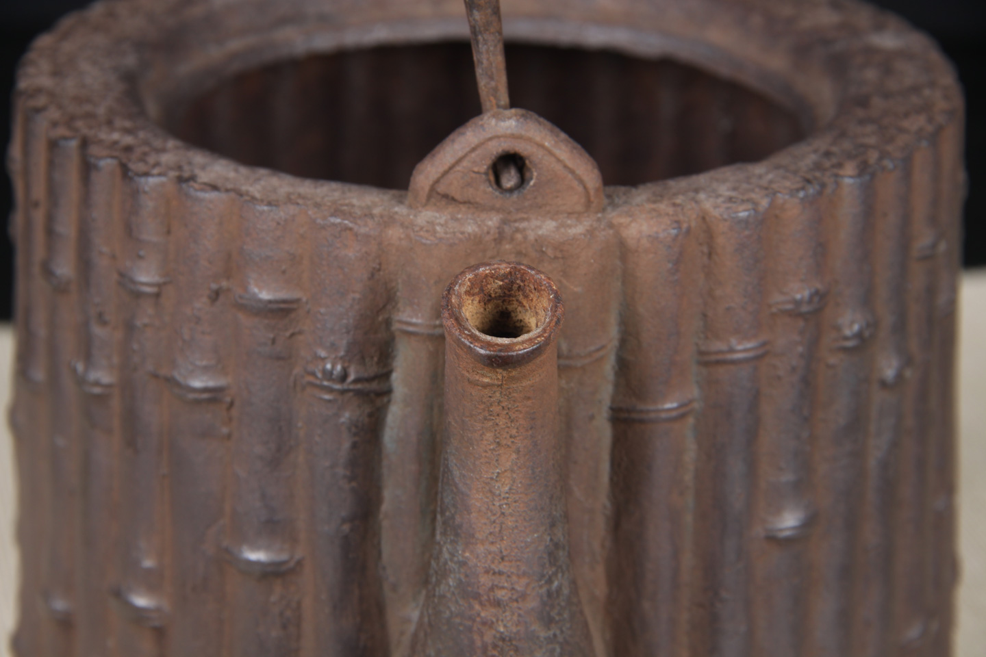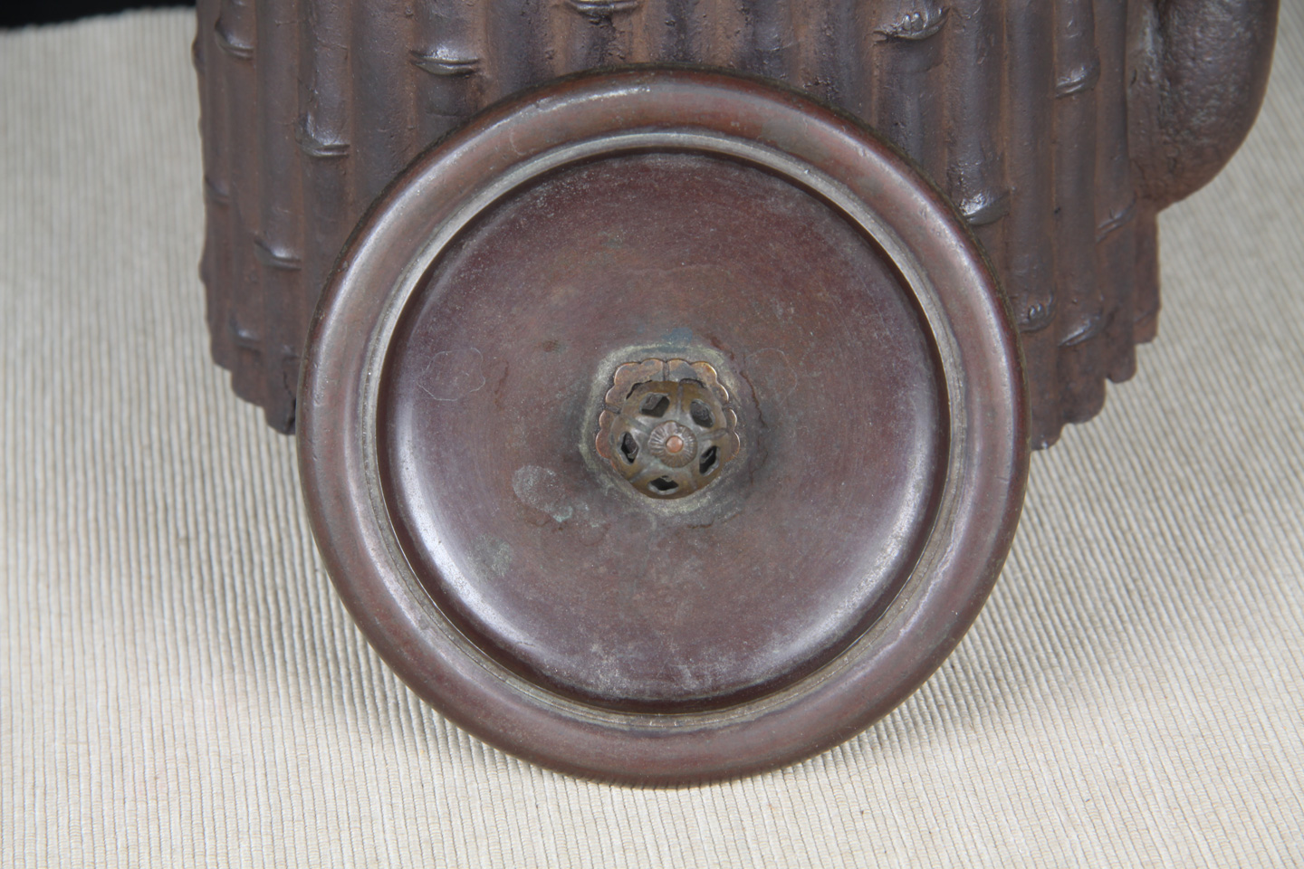 日本铁壶 日本京都系关西铁瓶 龙文堂竹节型老铁壶 紫斑铜盖,厚重,做工精细,铸造竹节型,难得年份老的京都系关西铁瓶