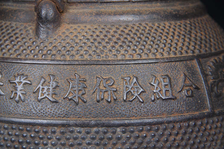 日本铁壶 日本南部龙盛堂老铁壶 细霰纹加唐草纹工艺,壶身铸造纪念款,一把纪念壶,有年份考究
