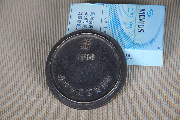 • 日本杂项 日本书道具天明铸物师栗崎二夫作鸠文镇 日本精工文房用具,带原装供箱