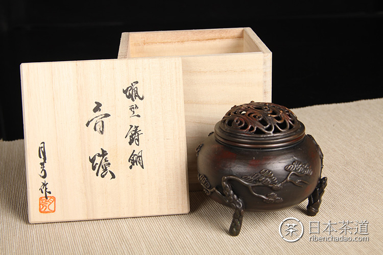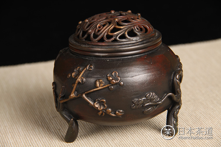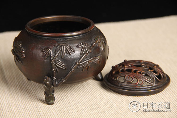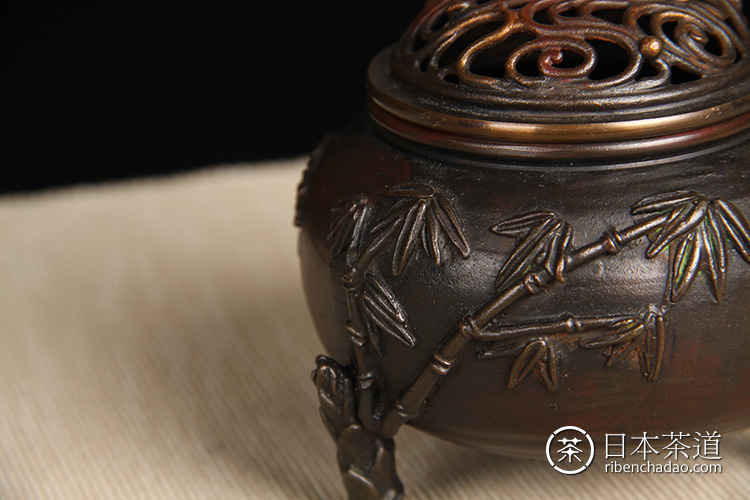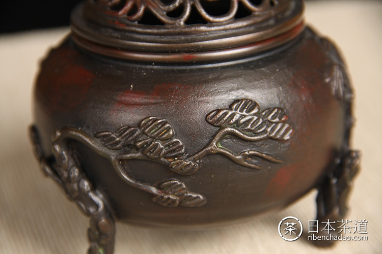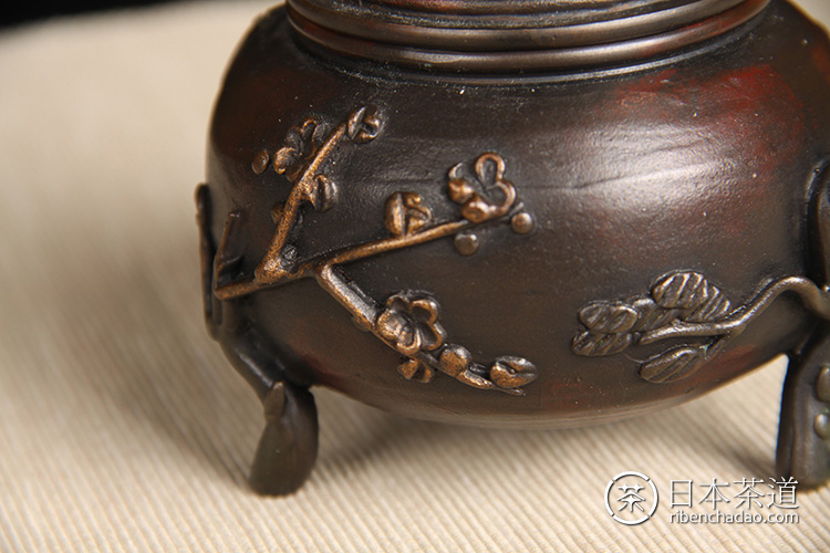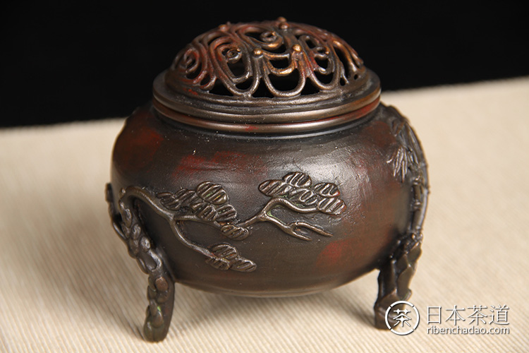 日本铜器 月芳作蜡型铸铜松竹梅三友三足铜香炉