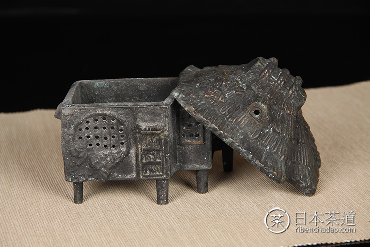 日本铜器 古绿色 茅屋型 生动刻画 老香炉