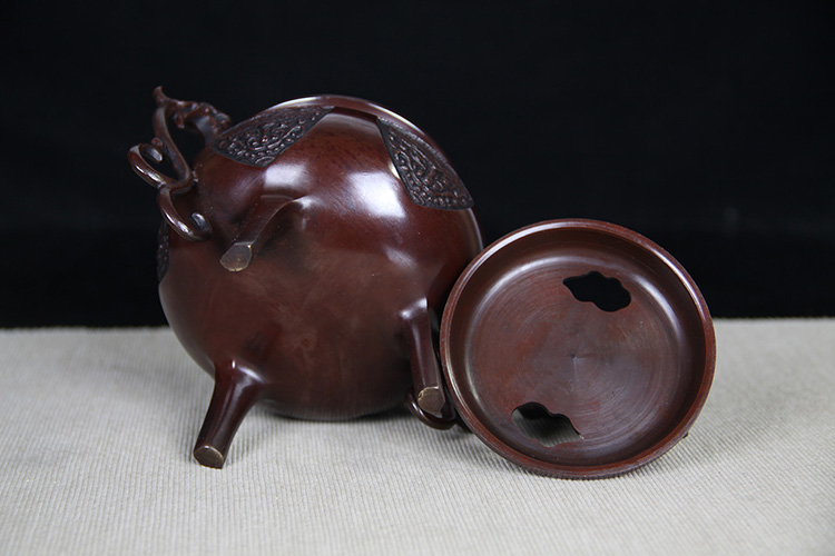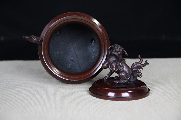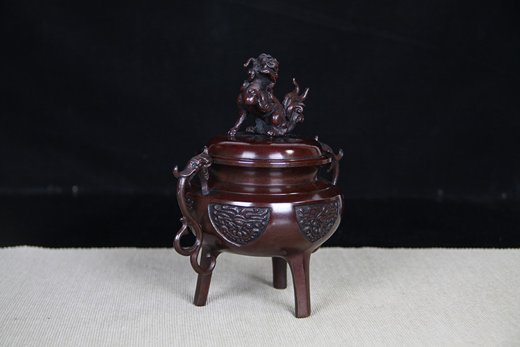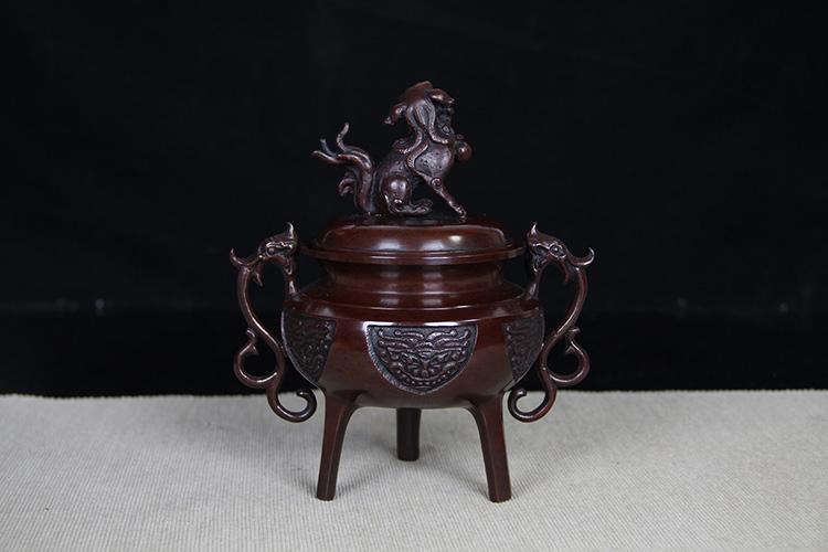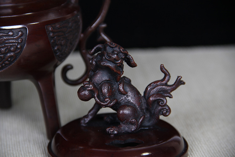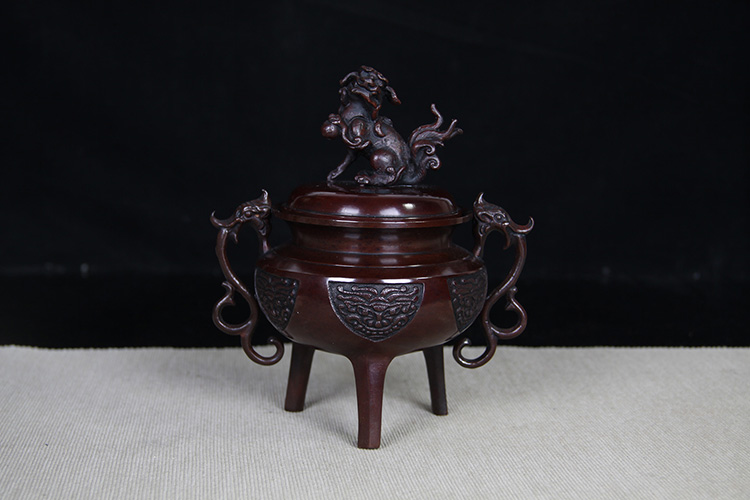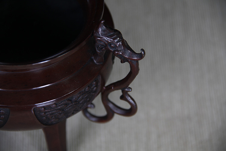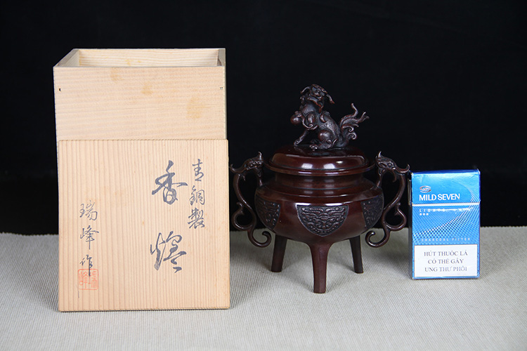 日本香炉 日本顶级铸铜工艺 瑞峰作 瑞兽摘 双龙耳 三足鼎立 保存完好的 日式 老香炉 带原装桐木供箱