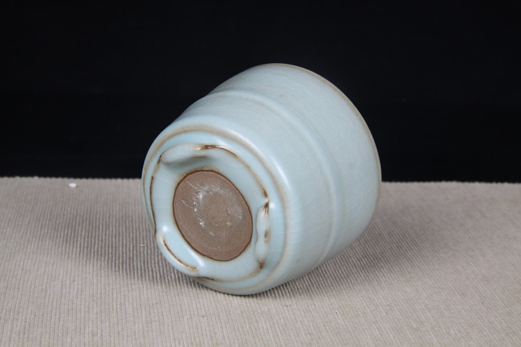 日本香炉 三足筒形香炉 汝瓷工艺,细腻小开片,亚光釉面,釉水肥润,铁胎,带原装供箱,十分简约的一只瓷香炉
